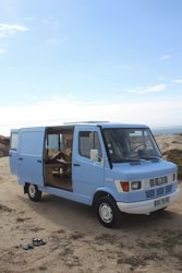 The 'SaltyBlue' is the ideal choice for enjoyable days filled with unforgettable moments in this classic Mercedes-Benz van from 1992.