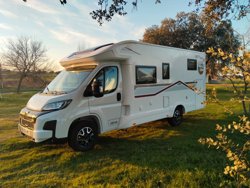Explora el mundo con estilo y comodidad en nuestra autocaravana perfilada Giottiline Siena 385, con capacidad de hasta 5 personas para viajar y dormir.