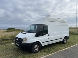 Furgoneta Ford Transit de 2008, marca 355mil km pero el motor fue cambiado a los 300mil. Tiene 115cv y consume 10l los 100km. Tiene 1 ventana en la puerta lateral con mosquitera y una claraboya con mosquitera también. Sistema eléctrico a 12V con un enchufe a un inversor que transforma a 220, 3 tiras led con sus interruptores y 1 enchufe toma mechero a 12v con tomas usb. Dispone de nevera a 12V tipo camping, WC químico, camping gas, grifo...